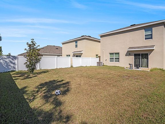 Welcome to The Orchids at Cypress Creek! This beautiful four-bedroom, two-and-a-half-bathroom home offers comfort and privacy with no rear neighbors. Built in 2020 by D.R. Horton, this two-story concrete block home (both floors - no wood framing upstairs) combines modern design with everyday functionality. Downstairs, you'll find an open floor plan with spacious living and dining areas featuring wood-look vinyl flooring. The open kitchen is ideal for entertaining, complete with a large island for meal prep or casual dining, stainless steel appliances, and a walk-in pantry. A convenient half bath is located on the main level, and sliding glass doors from the living area lead to a partially fenced backyard - perfect for grilling, playing, or relaxing in your outdoor space. Upstairs, all four bedrooms and the laundry room are thoughtfully arranged. The primary suite includes a dual-sink vanity, step-in shower, separate water closet, and a large walk-in closet. One of the additional bedrooms also has a walk-in closet, while the remaining bedrooms share a full bath with a double vanity for added convenience. Residents of Cypress Creek enjoy resort-style amenities, including a clubhouse, two sparkling pools, fitness stations, sport courts, dog parks, and playground. Conveniently located near Highway 301 and I-75, this home offers easy access to shopping, dining, and commuting routes. Schedule your tour today!