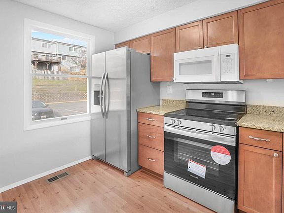 Offer Deadline 12/16 4PM This bright and updated Valley Park townhome bordering parkland has convenient access to an extensive trail network, public transportation, great schools, community center and Damascus town center. Renovations include new paint and carpet throughout, an updated kitchen with attractive cabinets and countertops, updated baths, recent HVAC (2019) and hot water heater (2023). The main floor has a sun-filled living/dining area with service access to the kitchen. Upstairs features two generously sized bedrooms including a primary suite with private vanity/dressing area and direct access to a shared bathroom. The shared bath is spacious and has a full tub. The finished lower level can serve as a 3rd bedroom or family room, has a half bath with room for expansion, a laundry room with plenty of storage space and a ground level walk out. Outside has a fully fenced back yard, storage shed and deck where you can enjoy a great view of the adjacent parkland and stocked pond. Two assigned parking spaces included.
