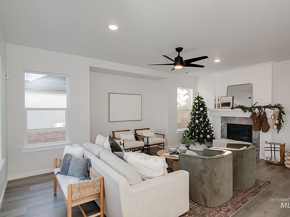 Get $35K now thru 12/31 with the Festival of Homes bonus! The Sundance 2710 with a .75 bath downstairs in Boise, Idaho | Be delighted on the main level by the modern kitchen area, dining room, and expansive living room w/shiplap accented gas fireplace. An expansive kitchen is accented with beautiful solid surface countertops, new refrigerator, stainless steel appliances w/ a gas range & soft close cabinets. One full bedroom & bathroom downstairs! Upstairs the other 4 bedrooms and an additional loft space await. The primary suite beckons as an oasis of relaxation with its soothing soaker tub and a remarkable walk-in closet. Bedrooms 2, 3, and 4 upstairs are oversized, the largest of which also has a walk-in closet. Dreamworthy backyard with full landscaping and large mature trees! The home comes with blinds, full landscaping, and full fencing. Closing no sooner than 12/29/23. Photos of actual home.