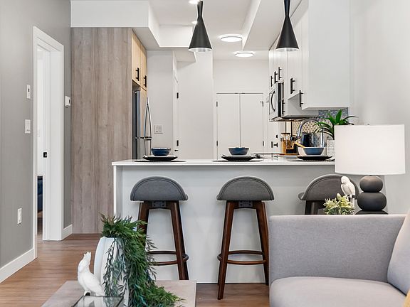 Bravo Apartments offer a range of amenities designed to enhance residents' comfort and convenience. These include a rooftop patio with BBQ featuring stunning views, ideal for relaxation and social gatherings. The building also features a bike storage room, with repair station and air pump, along with a pet wash area, catering to active lifestyles and pet owners. Additionally, tenant storage lockers ensure ample space for personal belongings. Inside the units, residents enjoy the modern touch of vinyl planking, two-toned cabinets, and large windows that fill the spaces with natural light.