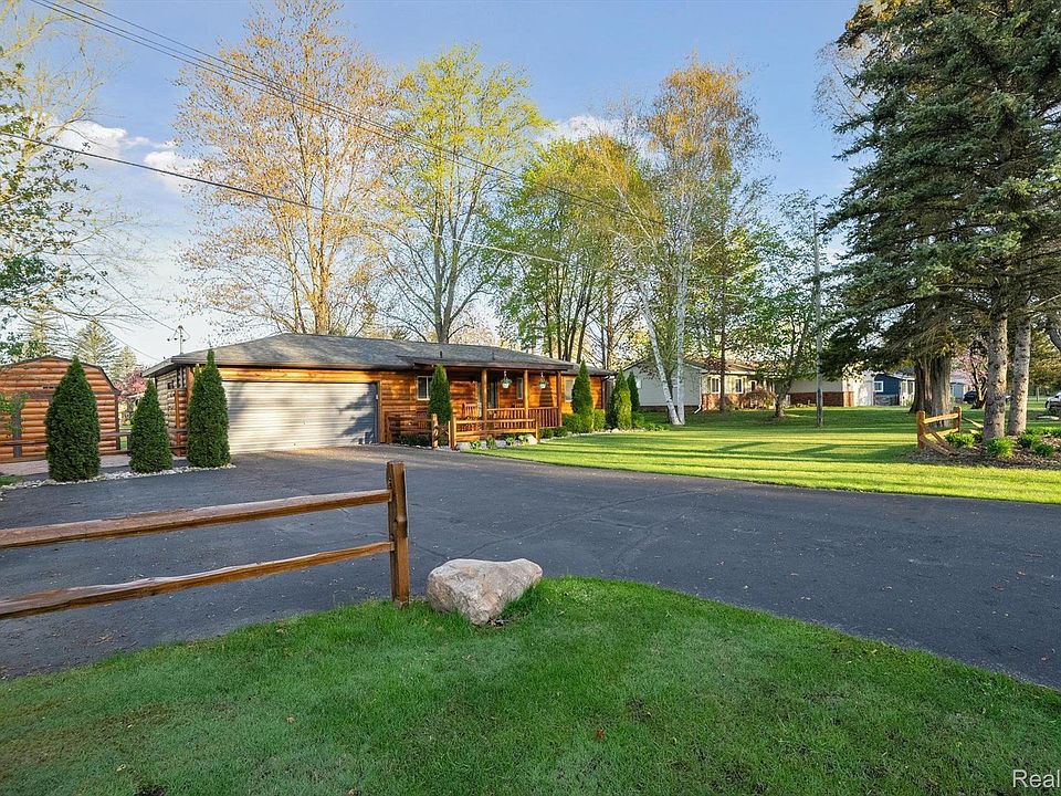 Are you searching for your own piece of waterfront paradise without having to make the long drive "Up North"? If so, look no further. This meticulously maintained log sided, ranch home has been updated from top to bottom (log siding, new roof and gutter guards, new kitchen and bathroom, new floors, new, landscape, new split rail fence and the list goes on). The sandy bottom make this a great lake for swimming and the fishing is great! Why not hop in your pontoon docked right in you own back yard for a relaxing sunset cruise? Bass Lake is a no wake lake (gas motors are allowed). This home is an absolute show stopper inside and out! Whether you are looking for your new primary residence, weekend lake house or even a new Airbnb to add to your portfolio, you will not be disappointed with the Hamburg Township beauty. There is even a (lake fed) lawn sprinkler system to keep your lawn lush and a whole house generator to ensure you're never left in the dark. In search of more square footage? Given the lot size and public sewer connection converting the attached garage into additional living space or an addition could be a possible option. Furnishings are available. Call today to schedule your own private showing.
