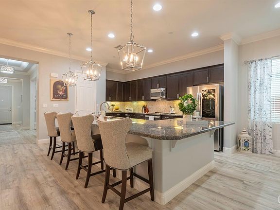 Hard to find 3 car garage with OWNED SOLAR in City in The Hills! Step inside this stunning, elegant 2-bed (PLUS OFFICE) 2.5 bath home in the prestigious Four Seasons 55+ community with many upgrades throughout! Some of the features include LVP flooring throughout, designer lighting, window treatments, herringbone backsplash in the kitchen, stainless appliance package convenient walk-in pantry, oversized granite counter tops and LG Smart Refrigerator and 9' x 12' custom bookcase with frosted glass cabinets. The spacious primary retreat is complete with ensuite, dual vanities, stall shower/garden tub & walk-in wardrobe. A generous laundry space is appointed with beautifully stained upper/lower cabinets. Shelving in the garage, upgraded patio barn door, low-maintenance backyard with BBQ that is connected to natural gas. This turn-key home has been cared for every step of the way! If you are looking for a quiet community with great association perks & a stunning residence look no farther