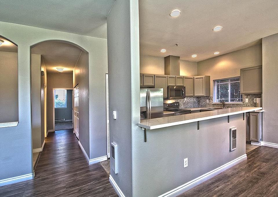 Private Gated entry, recently Totally remodeled 2 bed/1.75 baths. Beautiful, Ground floor unit with Slider to covered Patio & huge yard. Bright, Open floor plan Great Room. Generous Dining with updated light fixture. Kitchen with "Carrera-like" Quartz, Newer Stainless Appliances. Loads of counter & cabinet space and walk-in Pantry. Inviting Gas Fireplace. Wonderful Master Suite with Bay Windows, Walk-in closet & very Large master bath with newer fixtures. Laminate flooring with Newer carpet in bedrooms. Full-size Washer and Dryer in unit. Gas hot water tank. Covered Patio w/lockable Storage closet. Secure Garage with Electric Opener, Close to all Shopping, Bus, Paine Field, and Freeway access. Gated/fenced complex. Small Pets ok with permission. $2000/mo. First Mo. Rent / $2000 deposit. Credit/background check. Small pets with permission and $150 deposit.