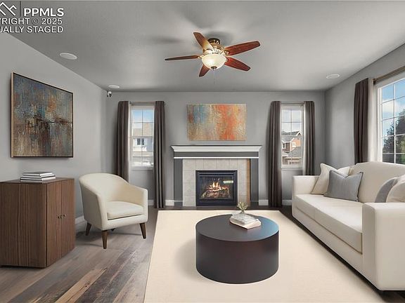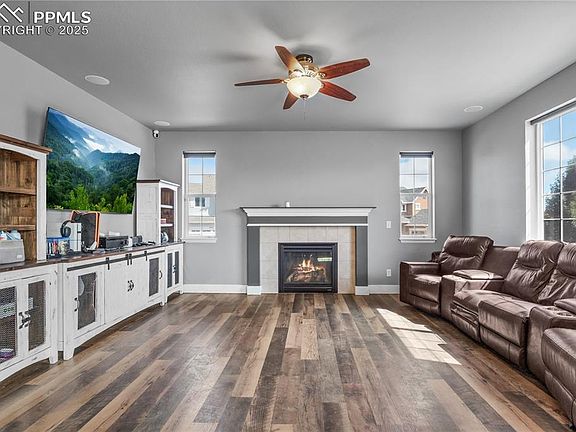 This beautifully refreshed home in Meridian Ranch blends modern comfort with timeless Colorado charm. Virtually staged to showcase its full potential, this 5-bedroom, 3-bath home features warm hardwood floors, plush carpet, a spacious kitchen with granite countertops, newer appliances, and an inviting living room with a cozy fireplace. The elegant primary suite offers a spa-like bath and walk-in closet, while the fenced yard and oversized garage provide space and privacy. Perfect for those seeking luxury, comfort, and long-term value in one of Peyton’s most desirable and growing communities.