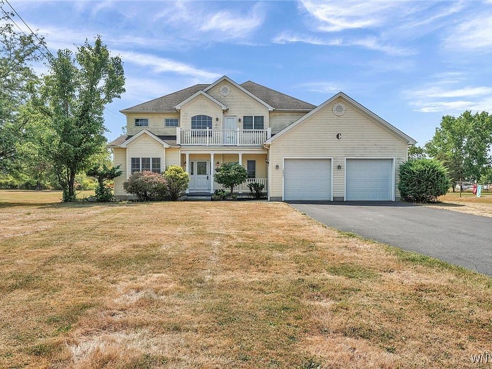 Welcome to 10025 Clarence Center Road. This two-story Colonial features 4 bedrooms, including one on the first floor, and 3 full bathrooms. In the past two years, significant updates have transformed this home.The kitchen now boasts new granite countertops and stainless steel appliances, including a cooktop, stove, sink, dishwasher, and microwave. The primary bath has been fully renovated with a double-sink vanity and a walk-in shower. Most floors on the first floor, as well as the second-floor bedrooms, have been upgraded with premium vinyl plank flooring. Custom-built bookshelves add character to many rooms.The sizable two-story family room features a gas fireplace surrounded by a wall of windows, allowing for an abundance of natural light, and custom bookshelves. A newer sliding glass door leads to a beautiful, brand new 32x15 composite deck overlooking the rear yard. The basement includes a massive 34x14 storage area with custom shelving.This home sits on a huge 2.8-acre wooded lot. Relax on the front covered 18x5 porch or enjoy coffee on the second-story 18x5 balcony. Enjoy the convenience of the Clarence Soccer Center right across the street and the nearby Clarence bike path. Some photos have been virtually staged. The seller reserves the right to set an offer deadline date. 2025-10-20