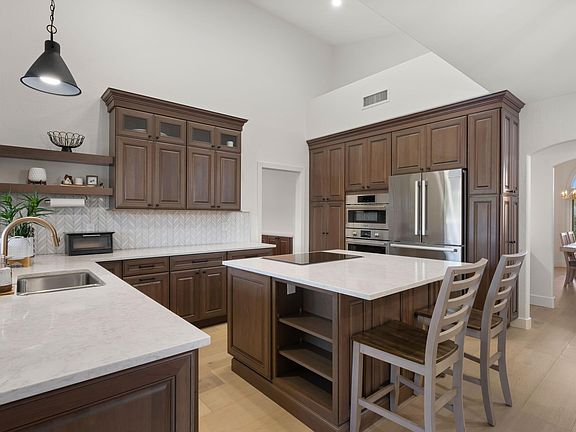 A porte-cochere drive greets you with lush landscaping, a grand double-door entry that welcomes you into a world of refined luxury. The gourmet kitchen, features quartz tops, S/S Bosch appliances.