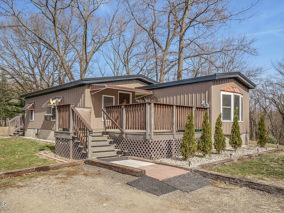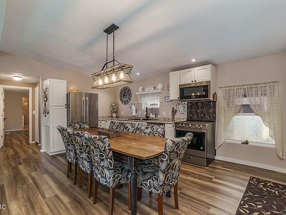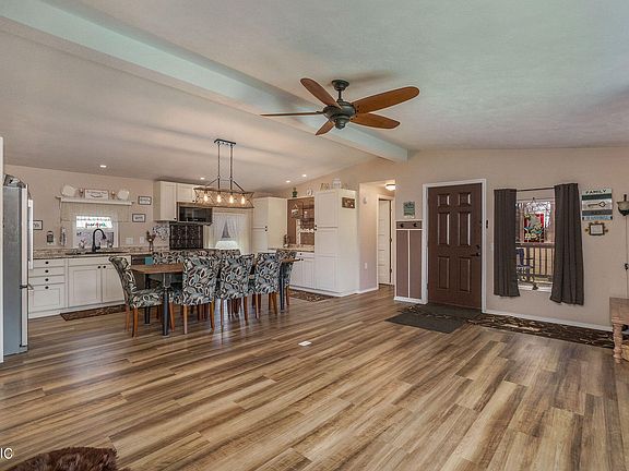 Welcome to your completely remodeled move-in ready 3 BD, 2 Bath home on 1.6 acres with amazing views from the 2 nice decks. New Steel Roof and siding. This home was taken down to the 2x6 studs and brought back to a welcoming open concept floorplan & features new double hung windows, 36'' entry doors, beautiful wood laminate flooring, drywall, lighting & bronze fixtures. The kitchen offers new self closing cabinets & drawers, counter tops, Whirlpool sunburst appliances and a 96'' custom built dining table w/8 upholstered chairs. You will keep warm in the winter & cool in the summer with the new Furnace, A/C & Electric Fireplace. New Front load washer and dryer,whole house on demand Hot water heater & water softner plus much more. Insulated crawl space & includes a 30x42 pole barn.