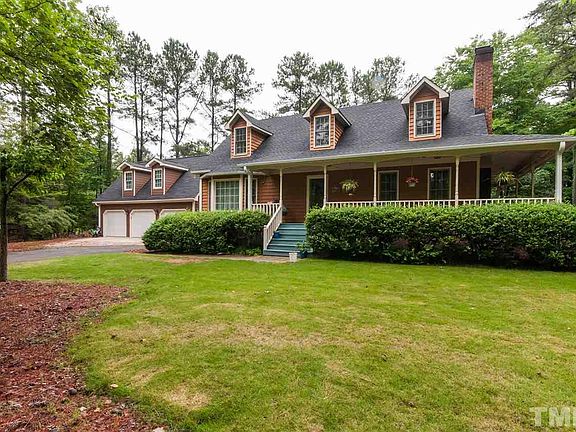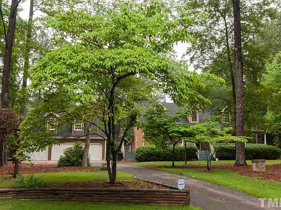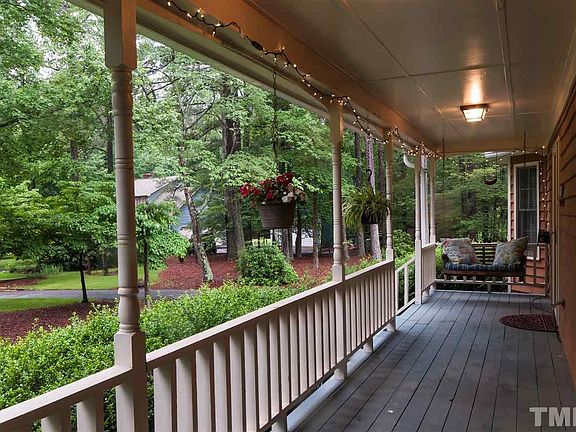 STUNNING HOME ON 1-ACRE FLAT LOT IN SYCAMORE CREEK DIST. Minutes from I-540 & Brier Creek. Rocking chair porch w/ FULL wrap around! Real wood burning FP! Watch deer roam from backyard fire pit. SS gas range pls elec. stove top! Upstrs bath just remodeled. Can use lrg bonus as BR 4 w/ closet! 2015-NEW roof/gutters, 3-car grge w/ 850 unfin. sq. ft., remod. laundry rm. w/ storage, backyard fence/deck, blinds, key-less entry, carpet, paint, & zoysia sod. 2013/2015 new dual HVAC. So much charm! Will not last!