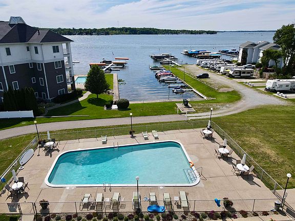 Immerse yourself in luxury at our second-largest condominium within the complex. With 400 sq. feet of living space and an extra 160 sq. feet of private bedroom space, you can enjoy spectacular lake views and sunsets for a great value. Recently renovated, this unit boasts new plumbing, quartz countertops, and full-size stainless steel appliances. The open living area offers an impressive lake view, setting the scene for relaxation. Step into comfort with an LG heat and AC mini split unit, Wi-Fi-connected for your convenience. The complex is pet and family-friendly, featuring a heated pool and a wonderful community patio for relaxing and dining. This unit also includes 3 pier spaces in the harbor and 3 parking places. If you seek a low-maintenance, move-in ready condo with ample space for your boat or boats, look no further! Experience all the advantages of Indiana's largest lake at an affordable price.