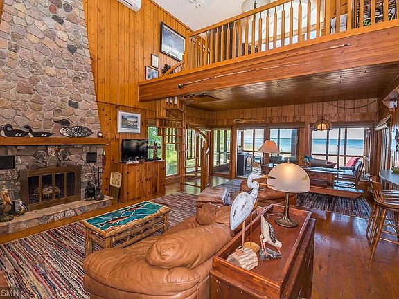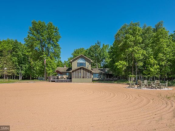 Retreat from the modern world to this 4 bedroom 3 bath Pelican Lake cabin which boast 215 ft of excellent sand frontage, a private 2.35 acre lot, level elevation to the lake and a perfect sand beach. Cabin features 2,294 sq ft, a floor to ceiling stone fireplace, Knotty pine accents and a large lakeside screen porch. Detached garage provides storage. Play a round of tennis on your own private tennis court or sit back and relax on the beach. Close to all the Crosslake and Breezy Point amenities.