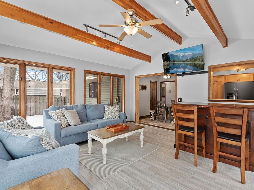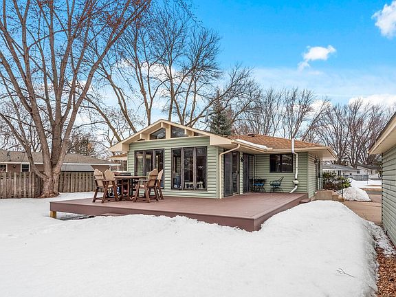 Updated one level home in Maple Grove! NEW maintenance free wrap around deck, furnace, kitchen appliances, flooring, & freshly painted throughout. Enjoy the HUGE, sunlit 4 season porch & a very private backyard. Very thoughtful and efficient use of every space.