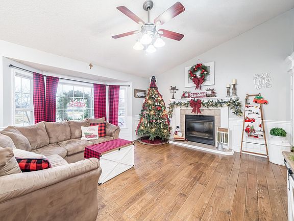 As soon as you enter this home you will notice the large room with vaulted ceilings and beautiful hardwood floors. Gorgeous fireplace for those quiet nights at home. The kitchen comes with stainless steel appliances, that remain with the home. You will love the pantry for extra storage space. The dining room opens up to a large covered deck, can you picture yourself enjoying dinner in the spring with the view of the gorgeous trees. The home has three bedrooms and two baths all on the main level. A 4th guest bedroom and full bath are in the basement. The basement also has a large family room, bonus room, and laundry room with storage. Oh and did we mention there is main floor laundry and laundry in the basement. The primary room offers a walk in closet, double vanities, and corner soaker tub with shelf. There is a 3 Car Garage, fenced in yard and mature trees. You will have your own private gate that opens to Pawnee Prairie Park bordering the property with over 5 miles of trails to explore.