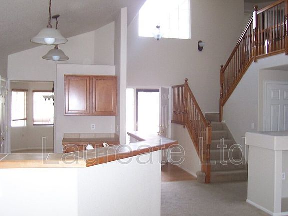 10027 Idalia St. 2087 square foot 2-story house + 740 square foot unfinished basement. MAIN- main floor master suite with 5 piece bath, family room with vaulted ceilings, fireplace, 1/2 bath, kitchen with tile counter tops, hardwood floors, cherry cabinets, breakfast bar, access to patio. UPPER- 2 bedrooms, common full bathroom, loft that overlooks kitchen and family room. Extra - unfinished basement, 2 car attached garage, fenced back yard and central air conditioning.