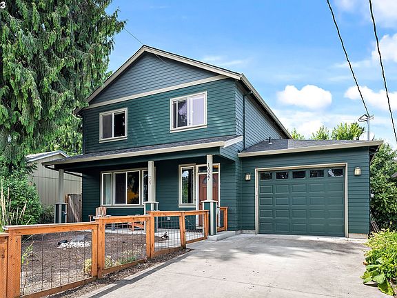 Welcome home to this newer craftsman-style home. The open-concept layout creates a warm atmosphere. The kitchen has stainless steel appliances, granite counters, an island, a pantry, ample storage, one bedroom, and a 1/2 bath on the main floor. The primary bedroom boasts a spa-like ensuite bath with a soaking tub, a large walk-in closet, and luxury plank vinyl floors. Two additional bedrooms upstairs with a full bathroom and a laundry room complete the second floor. Enjoy year-round outdoor living on the covered front porch and large fenced backyard. The home also features an oversized garage. This home is conveniently located near parks, farmer's markets, schools, and shopping and offers both convenience and tranquility. [Home Energy Score = 9. HES Report at https://rpt.greenbuildingregistry.com/hes/OR10219366]