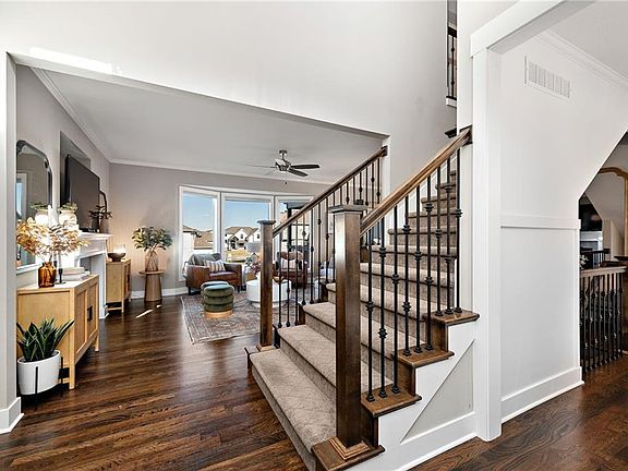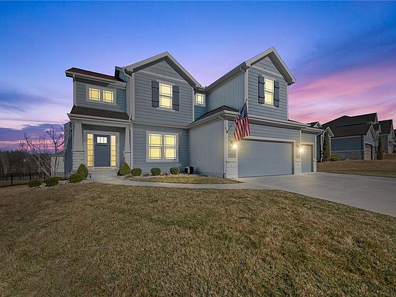 Gorgeous 2 story plan located in Liberty School district with Shoal Creek Elementary! The main floor of this home boasts abundant natural lighting with an open-concept layout that's perfect for entertaining. Enjoy evenings on the covered outdoor deck with steps leading down to the spacious backyard. This home is located on a great lot that would be perfect for an in-ground pool! You'll love cooking in this gorgeous kitchen with it's granite countertops and spacious island! The primary suite is generously sized with a large walk-in closet off the bathroom complete with dual sinks, jetted tub and tile shower. Three additional bedrooms and a full bathroom are located on the second level. The basement is already framed for an additional bedroom, full bathroom and REC room! It's ready to be finished! Upgraded light fixtures! A must see!