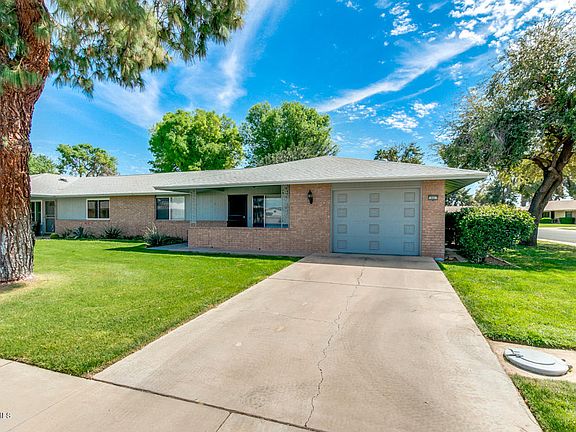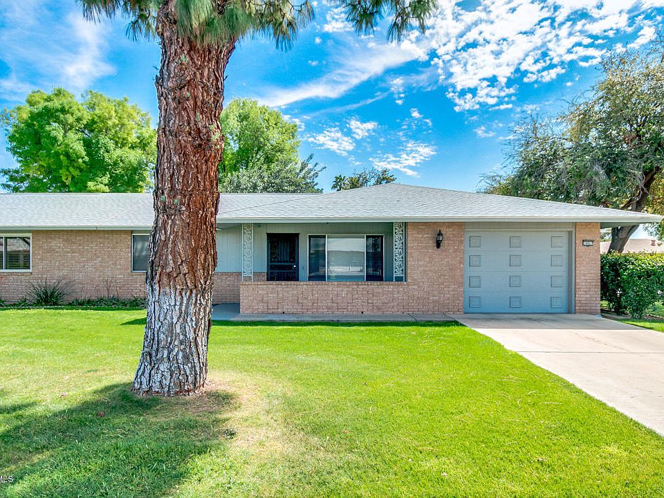 REMODELED & FURNISHED Gemini Twin in Sun City * Perfect for a SEASONAL HOME or RENTAL (Allowed) * Lock & Leave TURN KEY PROPERTY, HOA Maintains LUSH Landscaping & Exterior of Home + WATER/SEWER/TRASH included in Monthly Fees * 2 bd 2 bath 1204 sqft w/ 1 CAR GARAGE + GOLF CART Space * New FLOORING & CARPET * New PAINT * Kitchen FEATURES New STAINLESS STEEL Appliances (FRIDGE Included), Refinished Cabinets & Countertops & RECESSED Lighting * New LIGHT FIXTURES throughout * New VANITIES in both Baths + RefinishedShowers * New ENERGY EFFICIENT Windows * SCREENED In Back Patio * Front & Back Patio Floors have been Painted * Garage has been Painted & Floor has been Coated * Inside Laundry w/ UPDATED Plumbing & Electrical hookups, WASHER & DRYER INCLUDED * Pets Allowed - Max 2 at 30 lbs or less