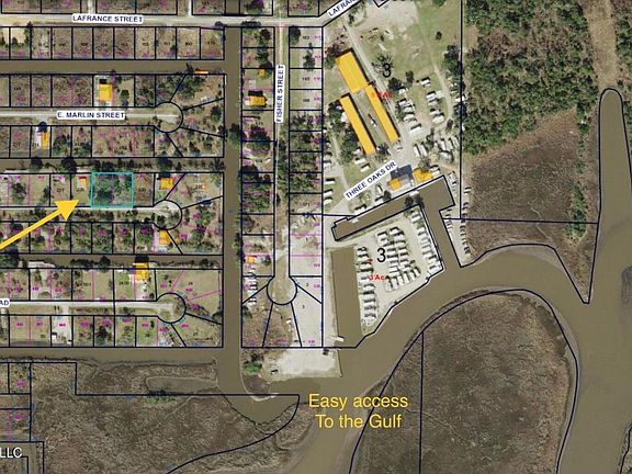 Double lot with bulkhead and pier. Close to the Gulf of America. Lots also have a well and city sewer. Some structure left that can be converted into a pavillion.Great location for a camp near LaFrance Marina and Silver Slipper. Fabulous fishing and crabbing.