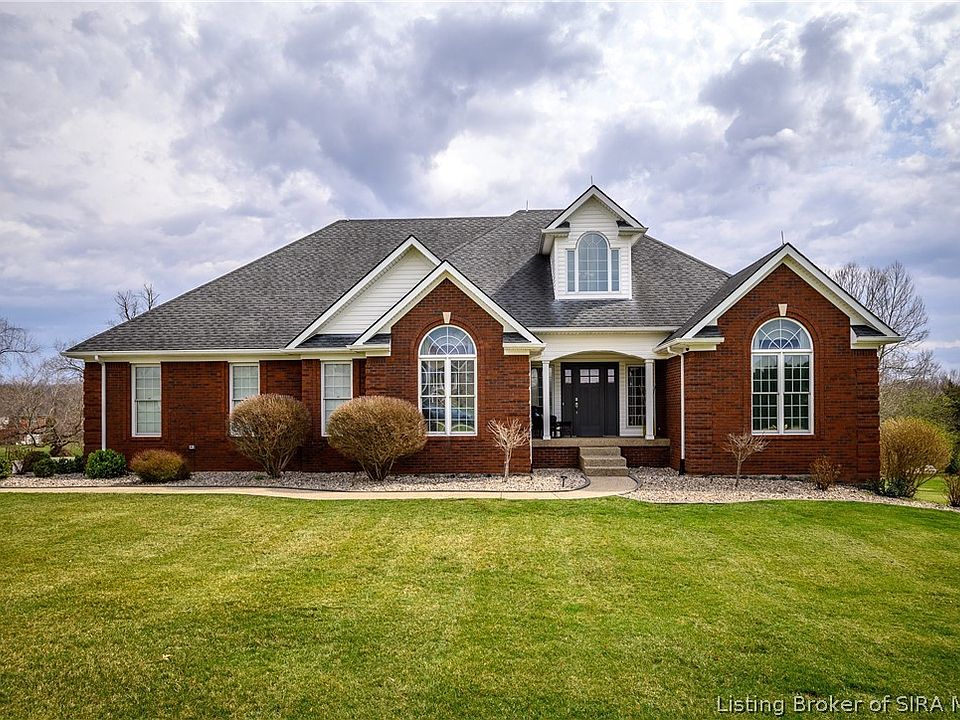 Don’t miss your chance to own this home in the desirable Wind Dance Farms! This stunning brick ranch offers 4 bedrooms and 3 bathrooms. Enter the foyer to find the spacious living room with stunning engineered hardwood floors, a floor to ceiling stone fireplace, built-ins, and double tray ceiling. Indulge in luxury in the primary bedroom with double tray ceiling and an elegant bathroom with freestanding tub and two person tiled shower. Other two bedrooms on the first floor have new carpet and double closets. The second bathroom has been recently renovated with a tile shower and double sinks. The kitchen boasts granite countertops, tile backsplash, an updated pantry and newer appliances. The spacious walkout basement features tile flooring, a large family room/game room (pool table stays), office area, kitchenette, 4th bedroom (with new carpet) and a full bathroom. There is an unfinished bonus room above the 2 car garage with so many possibilities. Pet free home. Washer and dryer stay. Sq ft & rm sz approx.