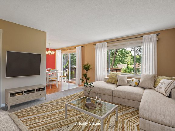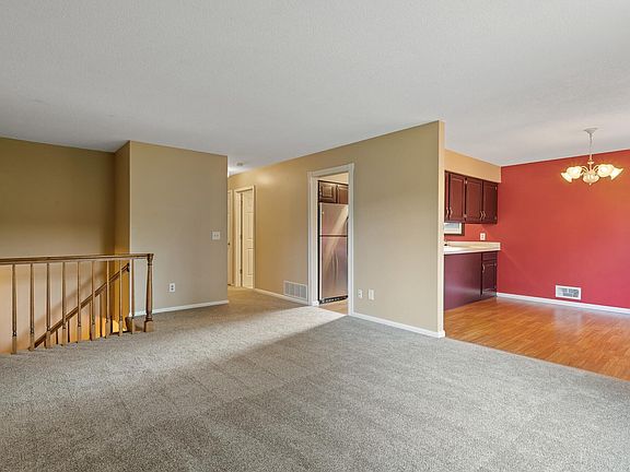 This split entry home offers brand new carpet in the upper level. Step inside to a spacious foyer then upstairs to the open living room that easily flows into the kitchen and dining room that steps out to a large deck overlooking the great backyard with storage shed and paver patio. Enjoy two bedrooms upstairs including a full bathroom with dual vanities and ample storage. Downstairs you'll find a light-filled family room with gas stove for warmth, a very large bedroom and another bathroom with storage. The laundry room offers even more storage possibilities. Attached two car garage with a service door to the backyard for convenience. Located near Elm Creek Nature Center, major roads, retail and dining options. This is a great opportunity!