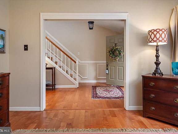 You won't want to miss the opportunity to tour this beautiful 4 BR, 2.5 Bath colonial nestled at the top of a cul-de-sac, on a partially wooded lot (more than 1/2 acre), located in the community of Burleigh Manor. This house is only one block from the elementary school and is also within walking distance of the middle and high schools. What a perfect place to raise your family! As you enter the foyer of the home, you will immediately notice the vaulted ceiling and the open staircase to the second floor. This house has hardwood floors throughout, updated baths and an updated kitchen with quartz counter tops and stainless steel appliances. The eat-in kitchen opens to the family room with a wood burning stone fireplace and access to the large deck that overlooks the beautiful backyard. The first floor includes a powder room and laundry room off of the family room. The second floor master bedroom has walk-in closets and hardwood floors. There is a vanity area between the bedroom and the master bath. The vanity has double sinks with granite counter tops. The updated master bath has a large tiled shower and an updated vanity with a granite counter top. Also on the second floor are three additional bedrooms and an updated full bath . This house has a full size unfinished basement with french doors that open onto a large patio that is shaded by the deck. This property is conveniently located 10 minutes from Columbia and 10 minutes from old Ellicott City. It is only 25 minutes to BWI airport and convenient to both Baltimore and Washington. This house has been freshly painted and is move in ready! Make an appointment today to see this beautiful house before it is gone!