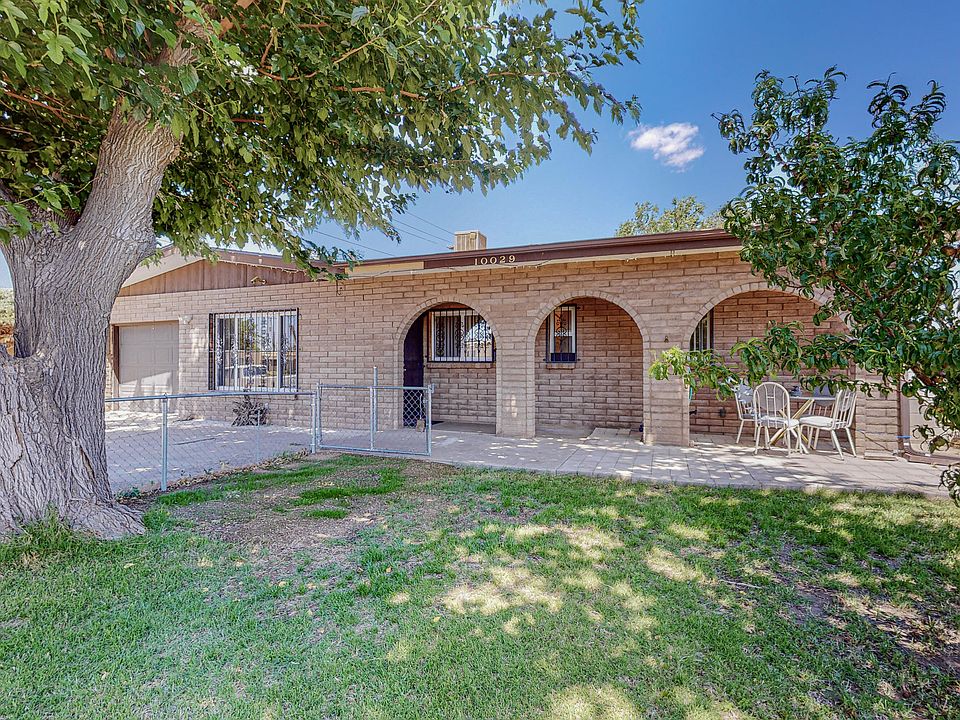 Price Adjustment! This home is move in ready and features two living areas, a wood burning fireplace, updated windows, newer flooring, (NO CARPET),monitored video security system and newer roof (2019) Private landscaped backyard with large covered patio, water feature/fish pond. Secured RV PARKING, leaf guards on gutters, and three spacious Morgan STORAGE SHEDS that convey with property. Fig, Apricot, Peach, Nectarine & Cherry trees. Dates and Seedless Grapes. All appliances convey including washer & dryer & refrigerator. Close to restaurants, shopping, parks,and schools.