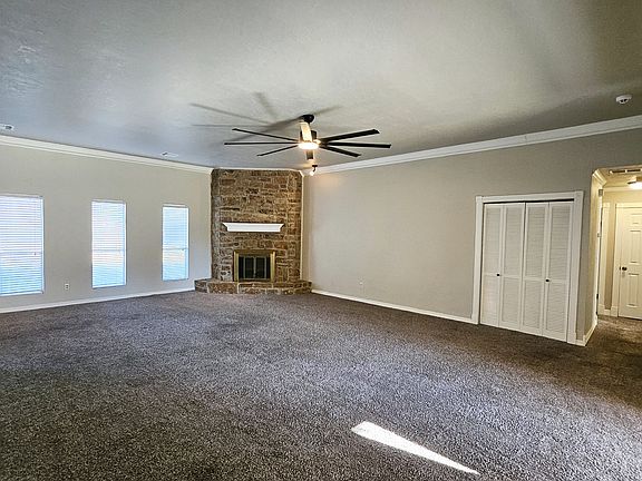 Step into this inviting home featuring a huge living room with high ceilings, a stone fireplace, and a wet bar perfect for entertaining or relaxing with family. All three bedrooms are generously sized, with ample closet space, and the primary suite includes three closets, including a walk-in. The home offers convenient laundry hookups, and a large, fenced backyard complete with a stone fire pit and walking path, providing a perfect outdoor retreat. Located just minutes from I-40 and I-240, this property combines comfort and accessibility in a sought-after area. Schedule your showing today!