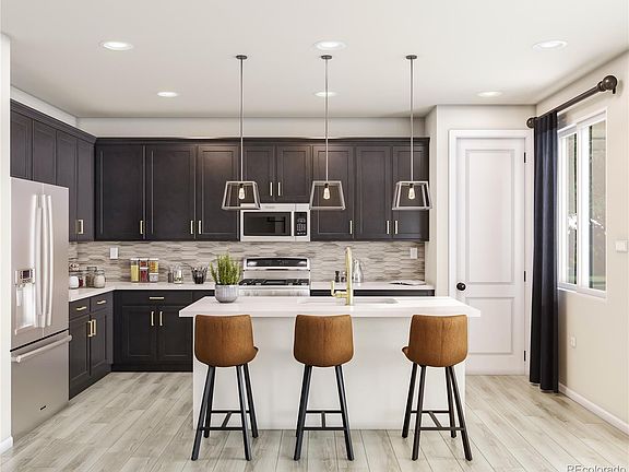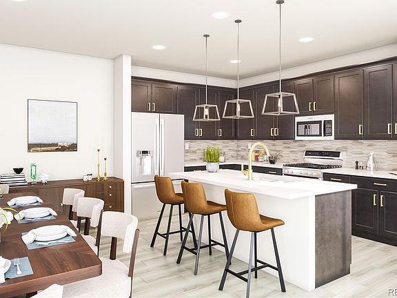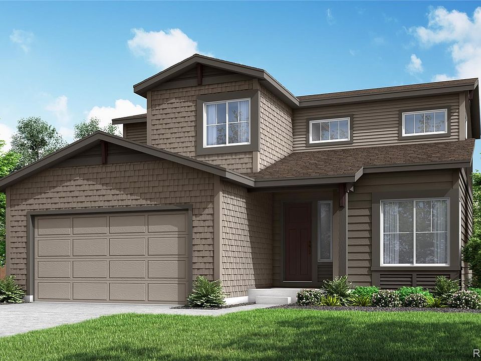 Move-in estimated for October. Beautiful two-story home with a main level study and large great room, featuring a modern gas fireplaces, and opens up to the kitchen and dining. Wide plank, wood-look water-proof flooring is included through out most of the main level. Interior finishes are a modern grey color palette and the kitchen includes grey cabinets, quartz countertops and stainless steel appliances. Plus, enjoy additional living space in the finished basement complete with rec room, bedroom and bathroom. Located in the desirable Reunion neighborhood, with an in-community STEAD school, large rec center with outdoor pool, gymnasium, fitness center and multipurpose areas. Plus a network of trails, 150 acres of parks and a community coffee shop. In addition to top notch amenities, Reunion also hosts numerous community events through out the year for their residents. Taxes are TBD and have not been assessed yet for this home. Est. annual taxes are shown at approx. 1.5% of purchase price. HOA is a metro district, in addition to fees that are incorporated into the property taxes, there is an additional HOA fee of 109.50 per quarter. Some photos and virtual tour are an example of the same floorplan/layout but are not photos of the actual home available.