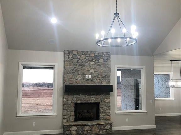 This is the one! Modern Farmhouse on 3/4 Acres in Deer Creek school district. This home is stunning from the trayed shiplap entry, vaulted beamed living room, stone fireplace, large kitchen w/ breakfast island, quartz countertops, open shelves & huge walk-in pantry w/ patterned floor tile & butcher block countertop. 10' ceilings throughout. Master bath has double vanity, two built in linen cabinets, free-standing soaker tub & walk-in closet w/ built-in dresser connected to laundry room. Both an office and a kids study area make this home fully functional for current lifestyle needs. Second bath has double vanity connecting two bedrooms with a shared tub/shower, water closet & linen cabinet. Two barn doors, in ground sprinklers, security system, natural gas, 8' tall garage doors, tankless water heater, and designer finishes make this home a must have. 30x40 shop allowed. Construction complete and professional pictures by the beginning of March.