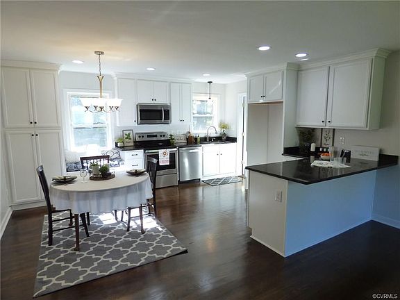 This is NOT your Grandma's rancher! This beautifully renovated rancher offers painted brick, welcoming front porch with a large stained wood deck on the rear. Situated on nearly an acre of property, this peaceful neighborhood and setting is quiet, yet offers convenience of any shopping you need and want within 5-10 minutes! The interior of the property has undergone a complete transformation and offers an open/split floor plan with master bedroom & private bathroom on one side and 2 bedrooms and shared bathroom on the other side. Great open space with GORGEOUS renovated kitchen offering spacious pantry-cabinetry, newly re-finished wood floors, recessed lighting, all new cabinetry, granite countertops, new stainless appliances, including microwave, dishwasher, stove and disposal. The window seat is the accent that yells HGTV! Both bathrooms completely renovated and offer distinctive 18" tile flooring new vanities and tops and all new plumbing and electrical fixtures. Other highlights include insulated windows, new dimensional shingles and aluminum gutters, and new American Standard Heat Pump. Great Chesterfield schools and a great location! Don't blink or you'll miss it!