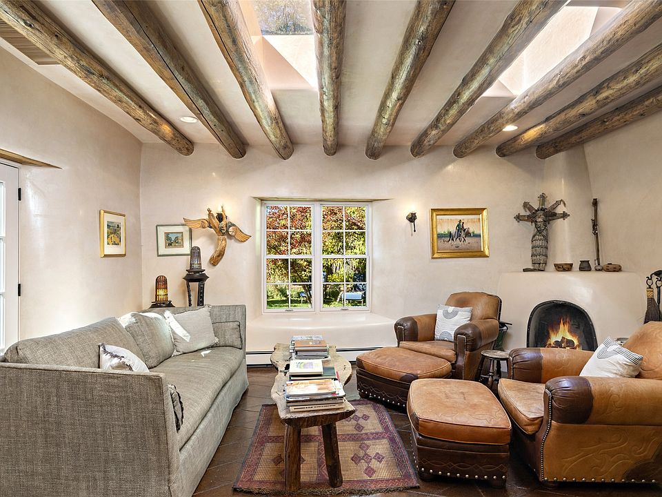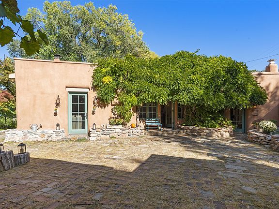 This authentic historic Eastside compound, completely remodeled by the well-respected builder Sharon Woods, is situated in an area close to world-class dining, art galleries, and shopping along one of the best-known addresses in downtown Santa Fe. The property consists of s single level 2 bedroom, 1,968 sq.ft. main house and two-story, 4 bedroom, 1,528 sq.ft. guest house, both adobe and frame construction. Classically Santa Fe styled, the compound is surrounded by 0.208 acres of completely lush and mature landscaping behind private, walled, and gated spaces. Ideal for entertaining, the formal living areas create an open and airy place for guests and family to mingle and enjoy the mature gardens, bubbling fountain, and hot tub. The legendary and timeless Acequia Madre still runs through the back of the compound. Smooth plaster walls, vigas, brick, flagstone, and wood floors, as well as detailed ironwork throughout the homes, help to exude a refined and sophisticated lifestyle. Both homes have their own full kitchens, perfect for guests and families. Zoned RAC in the Historic Eastside, acequia water rights also convey with the property. This ideal location property is just down the street from The Teahouse, Geronimos and El Farol making it a desirable Santa Fe destination. Come open one of the two “truth doors” to step back in time to when the homes were first imagined.