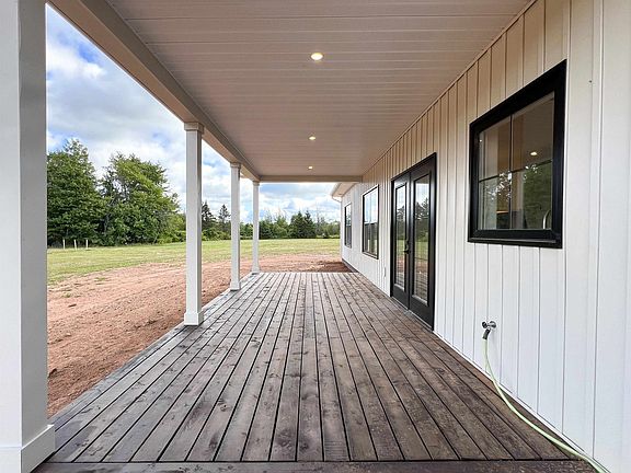 This modern designed home is set on a spacious lot built to be maintenance free. Located in the tranquil and picturesque community of Lake Verde, this stunning custom-built rancher features 3 bedrooms and 2 bathrooms. Just 12 minutes from Stratford and 15 minutes from Charlottetown, it offers convenient access to city amenities while maintaining a peaceful rural lifestyle. As you step onto the charming front porch and enter the spacious interior, you'll be greeted by standout 9-foot ceilings and large windows that fill the space with natural light. The heart of the home features custom cabinetry, sleek quartz countertops, stainless steel appliances, and a stylish island perfect for entertaining. The thoughtfully designed floor plan includes a private primary suite with an ensuite bathroom, two additional bedrooms, and a second full bathroom. A large covered back deck offers a sheltered space to unwind, entertain, and enjoy the surrounding countryside. Additional highlights include a double-car garage, a durable steel roof, and a warm and inviting exterior enhanced by black windows and exquisite finishes. This home also comes with LUX home warranty, landscaping and double paved drive. A place you will love to call home! All measurements are approximate and should be verified by purchasers if deemed necessary. 2 Videos available through links: https://www.youtube.com/shorts/152RDlXWwZw ; https://www.youtube.com/watch?v=HiYNO5G8n1w