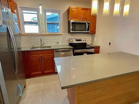 Excellent area . Renovated 3 bedrooms apartment, large family room with fire place , large eat in kitchen, one bath, perfect home office or extended family. Sharing of backyard, washer and dryer, Heat and Hot water and electricity included. New York City transportation at corner, plenty of commercial stores, restaurants , close to schools .