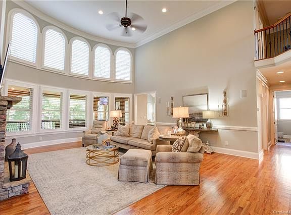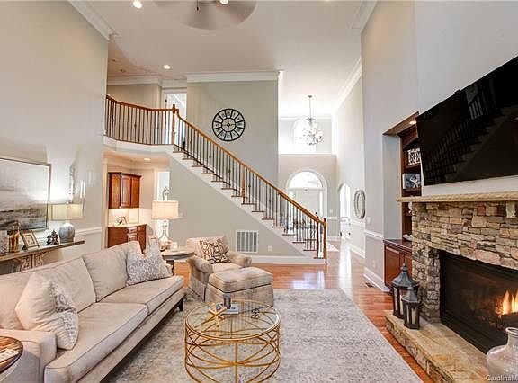 Full brick home with three car garage on a .50 acre private lot in Weddington School district. Master bedroom on main level with over 2800 square feet on the first floor (4122 total square feet). Awesome open floor plan with a massive unique covered cedar porch (23'x16') plus a grilling deck. Four bedrooms with 3.5 baths, kitchen has been updated with GAS cooktop, double ovens, beautiful quartzite countertops and new backsplash. ENTIRE main floor has site finished hardwoods (including master bedroom) that have been recently refinished. Large entry hall to master bedroom with a flex room for a second office or nursery. Tons of crown molding added and interior freshly painted. Wonderful community with a Club House, Pool, Walking Trails, Tennis Courts and Playground. Close to all shopping and restaurants (Waverly, Rea Farms, Stonecrest, Blakeney and Arboretum- just to name a few) and minutes to 485.