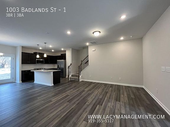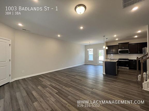 This 1558 square foot townhome home has 3 bedrooms and 2.5 bathrooms. This home is located at 1003 Badlands St #1, Durham, NC 27713.