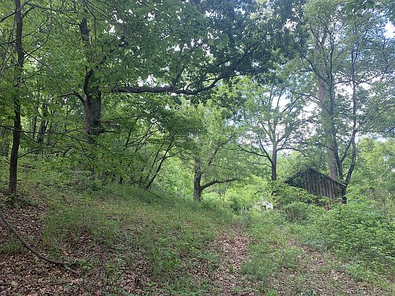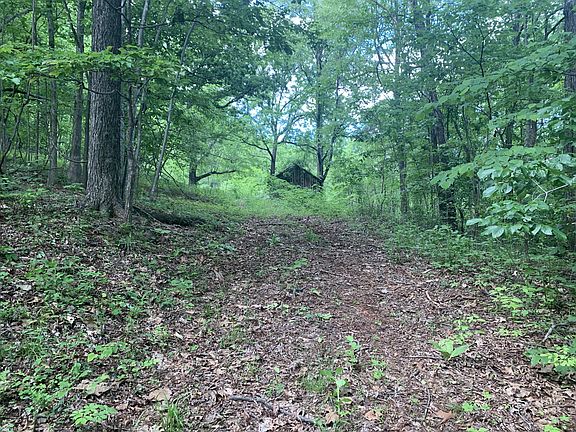 Very private, peaceful setting! 27.93 acres with spring that produces a bold stream. Cabin on property is conveying AS-IS, but has electricity, some plumbing, and offers 1 bedroom and 1 bathroom. Workshop, tool shed, and other buildings on property that could be nice with some TLC. Several black walnut trees, persimmon trees, and peach trees on property. Purchaser responsible for well and septic.