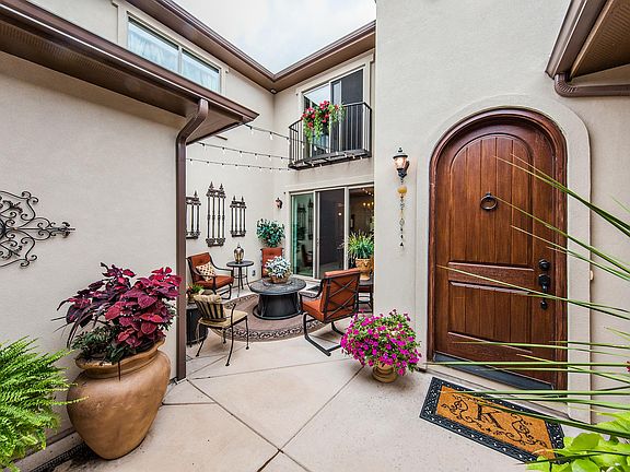 Stunning custom home with main floor master in The Estates of Buffalo Ridge, an exclusive gated community. You are invited into this gorgeous home through a charming private courtyard with a Juliet balcony and an iron gate. This home boasts a large open floor plan with a great room, study, dining room, butler's pantry and spectacular chefs kitchen. The soaring ceilings and wide plank flooring are showcased by a beautiful cast stone fireplace and a 12 foot gourmet island. The kitchen includes a 6 burner Viking cook top, under cabinet double ovens, and a custom range hood. Enjoy the lighted pergola entertaining area which features a built in grill. The hand troweled walls and granite counter tops throughout add to the elegance of the home. Three additional bedrooms on the second floor, all featuring en-suite baths and walk in closets. The walkout lower level of the home includes wide plank birch flooring, a custom bar with exquisite granite counter tops, private guest suite and bath.