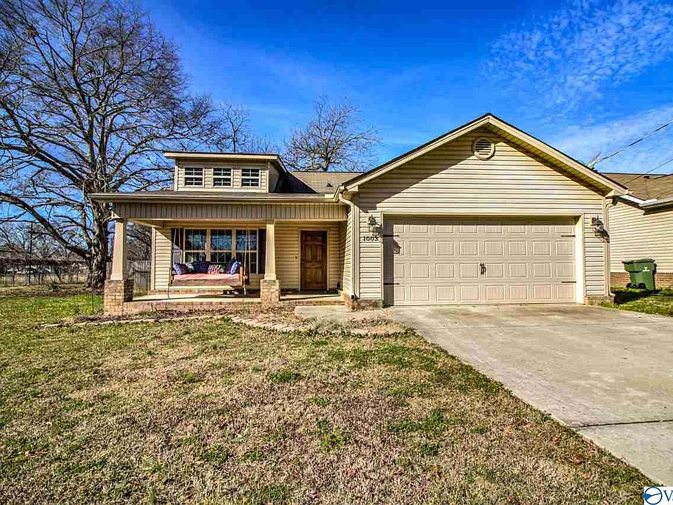 CUTE BUNGALOW HOME with a fabulous open floor plan! Convenient to CHARMING DOWNTOWN HARTSELLE! 3 bedrooms, 2 bath home with hardwood flooring in great room, kitchen and hallway, carpet in bedrooms and tile in baths. Master bedroom features private bathroom and walk in closet. Separate laundry room that leads out to the double car garage. Large privacy fenced back yard.