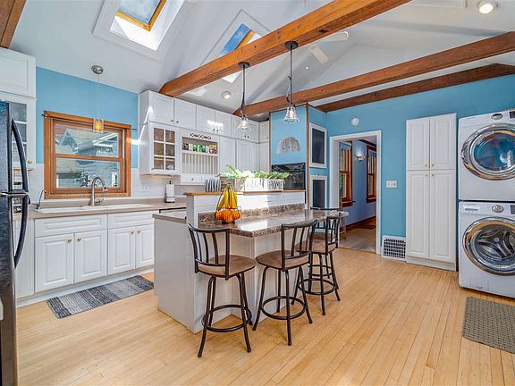 Incredible 3-bedroom character home decked out w/ beautiful updates! Amazing kitchen boasts floor-to ceiling white cabinets, exposed wood beams, island w/ stove top and breakfast bar, vaulted ceilings, & skylights that flood the space w/ light. This home also features a gorgeous sun room overlooking the deck made from composite & the fenced-in backyard, formal dining room w/ glass french doors, & 2.5-car garage! Updates include: new furnace, flooring, bathroom, patio door, paint, and more!