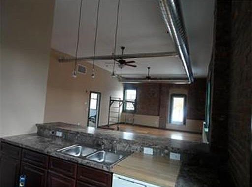 Newest and Best Rental Opportunity in the Town of Palmer. This 1-Bedroom Apt. with a Full Master Bath and Walk-in Closet also has a half bath off the Open Floor Plan of the Kitchen/Living Room/Dining Area all surrounded by windows and sunlight and character w brick walls and hardwood flooring ~ Allen Block is a historic building with charm that will make you feel at home. Plenty of living space (1200 square feet !!) and the landlord says fur friends may be welcome as well, come fill out an application - You can expect to move in after August 15th. This building has an intercom/security lights/plenty of parking/brand new affordable Energy Heating+Cooling fueled by propane. Interior Sprinklers and state of the art alarm system make this building a safe and pleasant rental opportunity.