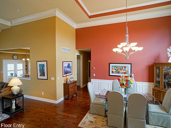 5 BR, 3 BA home in the Meadows of Polo Fields with 4200+sq'. This twelve year old home is set on one of the most desirable lots in the subdivision beside woods and a creek. It features hardwood floors, tile, granite and carpet throughout. Quiet cul-de-sac. The main floor has an open floor plan with vaulted and tray ceilings. The large windows on the front and back sides provide abundant natural light. The eat-in kitchen overlooks the back yard/patio and great room with gas fireplace. The dining room is large enough for a twelve person table. The master suite includes a large bath with Jacuzzi tub, walk-in shower and closet. There are two other bedrooms and a second bull bath on the main floor. One of the bedrooms could easily be used as an office. The lower level is a home all its own with two bedrooms, one bath, a recreation area, open kitchen and family room with its own entrance and patio. It is perfect for entertaining, the mother- in-law, rental income, or home for the older kids and grandchildren. The exterior has beautiful landscaping and two patios, one off the main floor kitchen and the other off the family room on the lower level. The electric awning provides shelter from rain and sun, plus there is an outside bar. Watch deer meander along the creek from the screened enclosure. There are large closets and massive amounts of storage throughout. Two car attached garage. There is also a security system. All appliances stay.