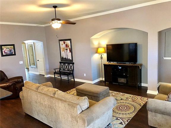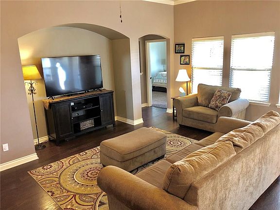 You will fall in love with this pristine, move-in ready, 4 bedroom, 2 bathroom home. Open concept main space, large bedrooms, built ins, wood-look floors, and lots of natural light are some of the homes best features. The spacious living room is open to the kitchen, which has a great pantry for additional storage. The master suite offers a large bedroom, with a tranquil ensuite including a soaking tub, double sinks, and a huge closet. The other three bedrooms are of good size with nice closets. The laundry room is located off the hallway, separate of the garage entrance. The back patio is covered, has ceiling fans, and has plenty of room for a grill and furniture for enjoying the great backyard. The home also has a sprinkler system and storm shelter. The neighborhood features a playground and walking trails. Call today to see your next home.