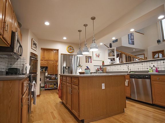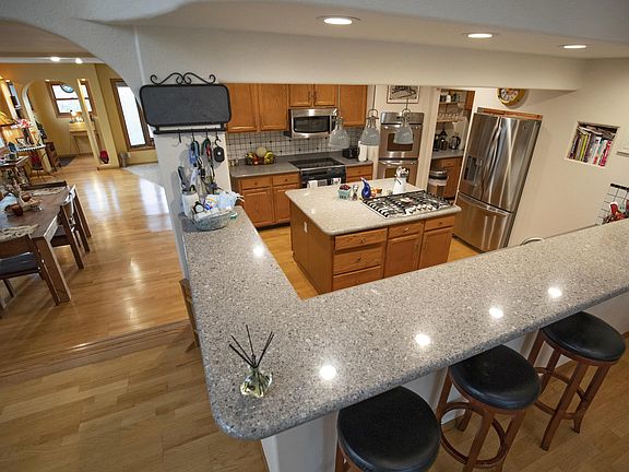 GORGEOUS and UNIQUE describes this one-of-a-kind home. Located in the heart of downtown Gillette it features 7 bedrooms, 2.5 bathrooms. The upper level features a library, master suite and bedroom 2. The main level has a huge modern kitchen with a huge pantry, family room with windows top to bottom for the most gorgeous light, dining room, bedroom 3, and bathroom 2. The basement has 3 more bedrooms, family room, pool table and even a cold room to store food! This home is amazing!