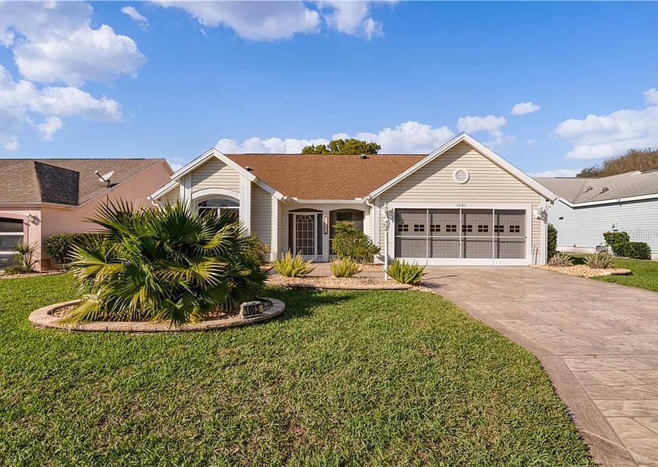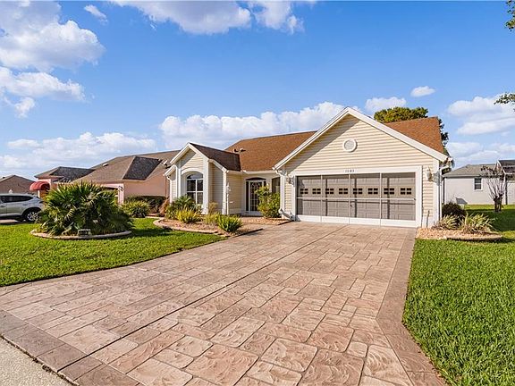 One or more photo(s) has been virtually staged. WAIT! WHAT? A 1700 square foot, 3 bedroom 2 bath designer home with a large 2 car garage and NO BOND near both Spanish Springs and Lake Sumter Landing with updated kitchens and bathrooms that have granite and quartz counters, vessel sinks, tile, frameless shower doors and cultured marble showers and new stainless steel appliances all for under $240,000? That's just crazy!! This popular San Marino has also added a huge Florida room. The curb appeal of this home is awesome with a beautiful, high end stamped decorative concrete driveway and sidewalks. The roof is in great shape with 30 year architectural shingles. The garage has an epoxy painted floor and sliding garage screen doors. The stainless steel kitchen fridge, stove, dishwasher and microwave are all brand new. The HVAC system has been replaced and has been maintained and includes two air purification and filter systems. The landscaping is pristine with decorative concrete curbing and not too much not too little low maintenance plants and shrubs. Gutters and downspouts are in place and the home is ready to move in to ASAP. yes, we know that almost everyone comes into a pre owned home and picks out their own flooring and we have priced this home accordingly! Hurry!