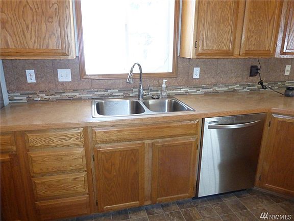 Conveniently located, 3 bedroom, 2.25 bathrooms, with covered front porch, sky lights, laminate floors, dining room, family room, breakfast bar, kitchen was remodeled in 2012, with tile back splash new counters, flooring, appliances, gas forced air with A.C., free standing gas stove, over-sized 2 car garage with half bath/mop sink, 220, built-in cabinets and shelving, easy to maintain yard with raspberry's and lilac's, storage shed.