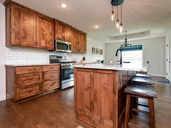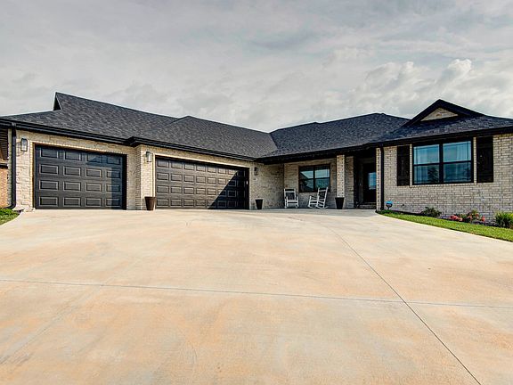 Beautiful, like new all brick home, on quiet cul-de-sac. View of trees/field from your back covered patio. Spacious open floor plan with plenty of natural light. Quality built with special features including additional access to laundry room from large primary closet, upgraded refrigerator, custom cabinets, walk in pantry with custom shelving. Sellers have added a family sized storm shelter in the 3-car oversized garage. Lovely community clubhouse and pool. Great location near schools and town, yet peaceful neighborhood. Move in ready!