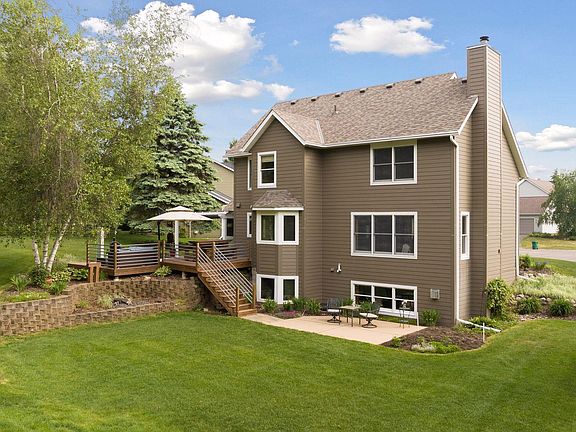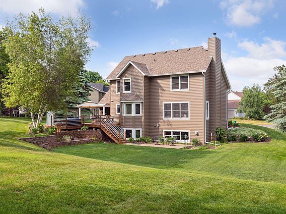 Rare ¾ acre lot at the end of a quiet cul de sac in Oak Glen! Meticulously maintained 1 owner home features Hardie siding & wonderful curb appeal. Main floor is open & inviting with beautiful hardwood floors & fireplace. Many windows provide lots of light & expansive outdoor views! Eat in kitchen has SS, granite & tile backsplash with laundry & powder room nearby. Upstairs French doors lead to a huge Owner’s suite with commanding views of the backyard. An ensuite offers a walk-in shower, jetted tub & large walk-closet. Two additional bedrooms & bath. Lower level great for entertaining with a rustic stone fplc, bar area, knotty pine ceilings, exercise room, 3/4 bath & vanity & even a ski waxing room! Outside, current owner's pride & joy is the large deck & pergola covered paver patio theater, inground sprinkling system keeps the lawns green & lush. There's a quaint shed with a tin roof & barn door, a large, heated 3 car garage. Just a few blocks from the renowned Brown’s Creek Trail!