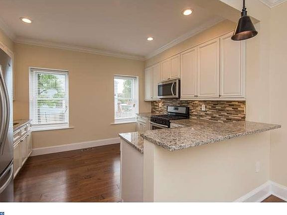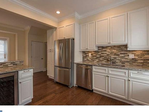 This lovely home has lots of finely crafted, old world charm with new, modern amenities, and low taxes. A new kitchen with granite counters and stainless steel appliances, including a wine cooler. There are high ceilings (9 feet) on the first floor with recessed high efficient LED lighting and crown molding,deep window sills, two fireplaces, one brick and one stone with a marble hearth, main and back staircases, wide window sills, built in bookshelf, and a window seat in stairway. It also has new hardwood floors throughout the first floor, new carpeting on the second floor, four bedrooms, one with large walk in closet, two new bathrooms with heated tile floors, a powder room with a built-in antique cabinet and a stone wall. It has new central air and gas furnace, new AO Smith hot water heater, new plumbing and electrical panel, a tiled front porch and drive leading to a detached over sized 2 car garage with loft. Also new interior 2 panel doors and a 1.25 hp american standard garbage disposal. Walking distance from the town of Swarthmore, septa R-3 and local parks. Priced to move