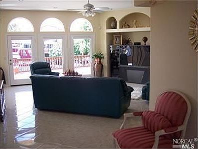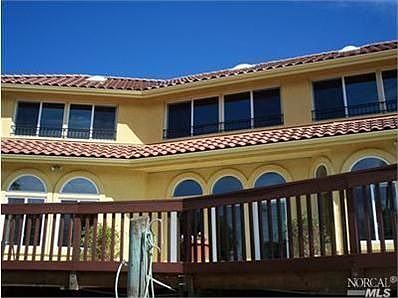 Stunning custom home on the waterfront w/deck and floating dock that can accommodate large boats. Bright & open design w/high quality tile floors. Formal dining room, elegant master suite. Huge upstairs recreation room, w/bath & kitchenette. Gourmet kitchen includes stainless steel appliances, double ovens, hood, double dishwashers, granite slab counters. Large French doors to rear deck. Views of the water and Suisun Marsh & Wildlife Preserve.