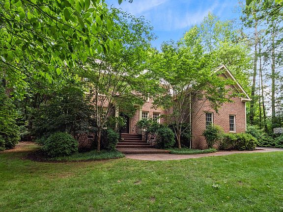 Elegance, space, and timeless charm define this stunning all-brick home in coveted Camden Place. Thoughtfully positioned on 0.6 acres at the end of a quiet cul-de-sac, the property offers exceptional privacy, mature landscaping, and enviable curb appeal—all within the sought-after Chapel Hill-Carrboro school district. A dramatic two-story foyer sets the tone for this custom-built home, where natural light fills each room and the layout effortlessly blends gracious entertaining with everyday comfort. The main level features a spacious primary suite with brand-new carpet, a luxurious en-suite bath, formal living and dining rooms, and an inviting family room that flows beautifully to the screened porch and lush backyard oasis—perfect for relaxing evenings. The kitchen is a chef's dream, showcasing hardwood floors, a charming window seat, granite and solid surface countertops, a center island with seating, and premium SubZero and Wolf appliances. Upstairs, you'll find four generously sized bedrooms, two dedicated offices, and a large bonus room with a built-in microwave and mini-fridge—ideal for movie nights, game days, or playtime. Brand-new carpet throughout the second floor enhances the home's fresh, move-in-ready feel. The laundry room has also been refreshed with new LVP flooring, adding both style and functionality. A third-floor flex room offers even more possibilities—think yoga studio, home gym, or creative retreat. Additional highlights include a side-entry garage, high-quality construction, and exceptional maintenance. With its prime location just minutes from UNC-Chapel Hill, I-40, and all the area has to offer, this exceptional home is a rare opportunity for the discerning buyer seeking space, comfort, and classic appeal.