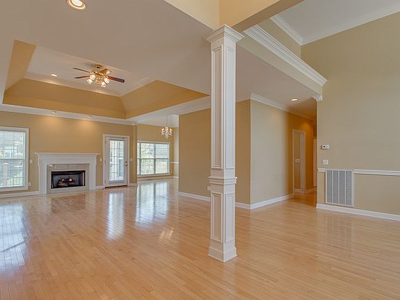 Charming, all brick ranch with master suite and two guest rooms on main level. Hardwood floors throughout. Huge rec room over (3) car garage. Large trex deck off of family room that overlooks community fountain and pond. Master suite has two sided fireplace, whirlpool tub, and walk in closets. Crawlspace is encapsulated and conditioned. Pet room off of garage is heated and cooled.